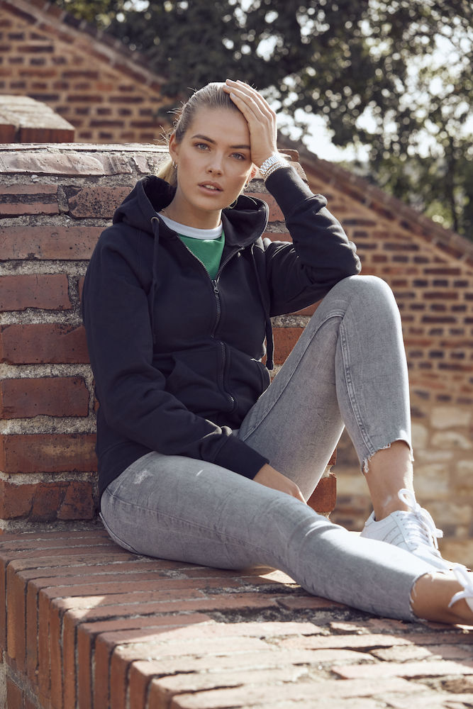 Felpone unisex con cappuccio e cerniera. Tessuto garzato molto consistente e costine 2/2 elasticizzate contraddistinguono questo capo fitting moderno con cappuccio in doppio tessuto e lacciolo piatto. Tasconi frontali ampi, taschino-zip invisibile e asole per auricolari. La morbida consistenza di questa felpa ti avvolgerà piacevolmente nelle giornate più fredde.