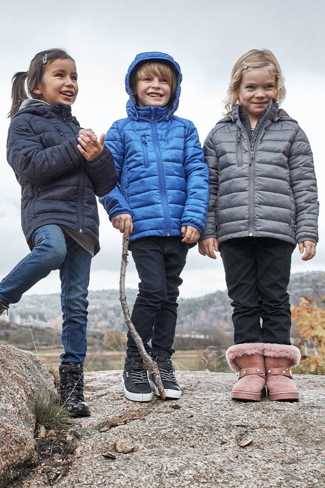 Piumino bambino con cappuccio staccabile. Moderna insulation-jacket calda e leggera, tessuto morbido con imbottitura compatta. Modellatura semplice di straordinaria funzionalità: sia tasche laterali che taschino al petto con cerniere, tasconi interni, coulisse di regolazione in vita e bordature elasticizzate. Cappuccio removibile con bottoni. Una giacca davvero smart, autentico best-seller Clique.