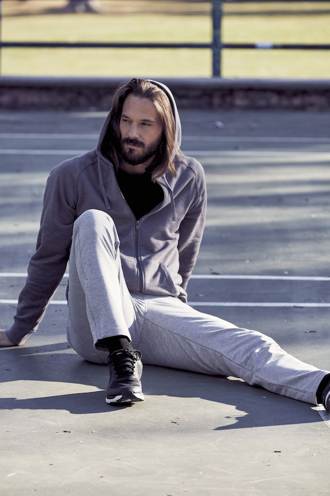 Felpa uomo con cappuccio e cerniera. Il tessuto fiammato soft-touch, la fodera in jersey del cappuccio, le maniche raglan ed i tasconi frontali donano a questa felpa uno stile particolarmente giovane. Design essenziale e fitting perfetto nei 3 colori disponibili per un capo sportivo pratico e comodissimo da portare sempre con te.