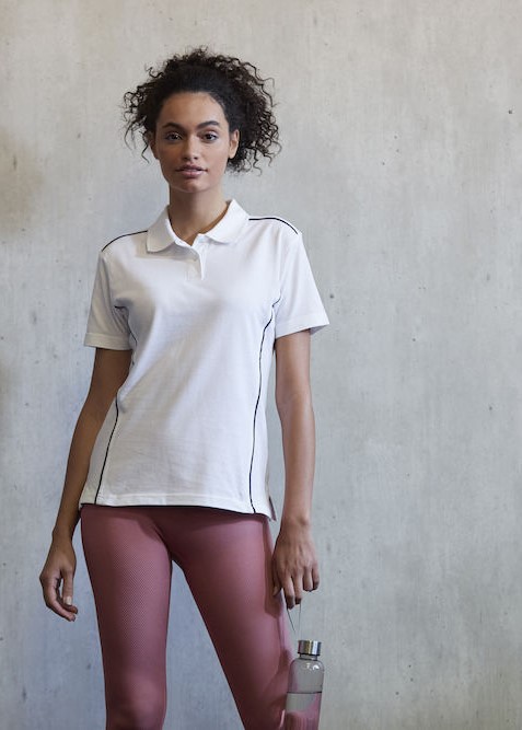 Polo piquet donna in cotone pettinato stabilizzato. Eleganti profili in contrasto colore su spalle e fianchi. Colletto jacquard con classica chiusura a due bottoni, cuciture ribattute, nastrino parasudore, spacchetti laterali ed etichetta tessuta. Un capo di sobria eleganza sportiva, disponibile in cinque colori basic abbinabili, se vuoi, ad una bella felpa o ad una pratica giacca Clique.