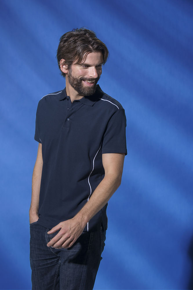 Polo piquet uomo in cotone pettinato stabilizzato. Eleganti profili in contrasto colore su spalle e fianchi. Colletto jacquard con classica chiusura a tre bottoni, cuciture ribattute, nastrino parasudore, spacchetti laterali ed etichetta tessuta. Un capo di sobria eleganza sportiva, disponibile in cinque colori basic abbinabili, se vuoi, ad una bella felpa o ad una pratica giacca Clique.