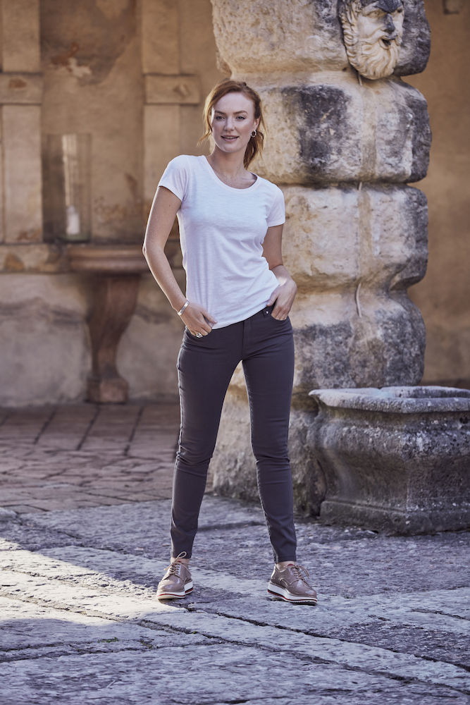 T-shirt donna in cotone fiammato ultra-leggero. Il fresco tessuto slub è stabilizzato e ammorbidito con trattamento ad enzimi naturali. Colletto con costina elasticizzata sottile e finemente ribattuta, dalla forma sempre perfetta. Cuciture laterali e ribattiture a doppio ago conferiscono resistenza a questo capo sportivo e raffinato.